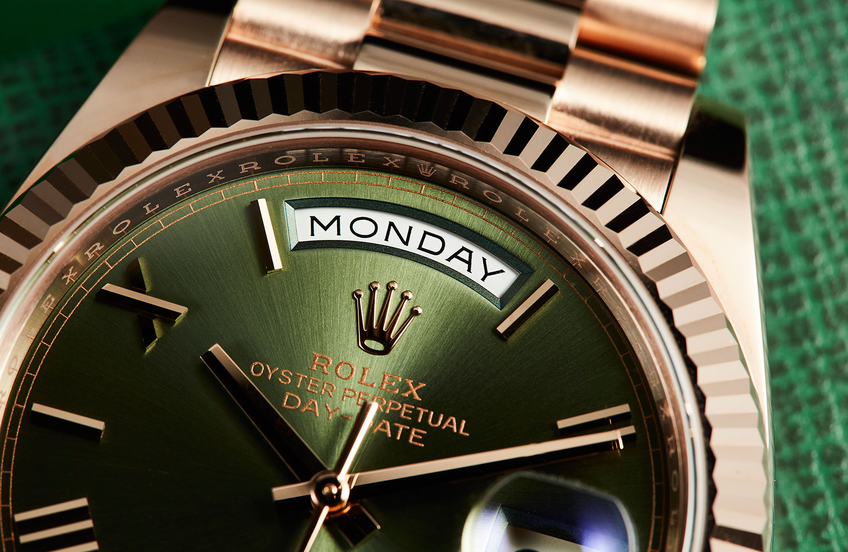 Replica Rolex Day-Date 40 Olive Green Everose Gold Watches in UK